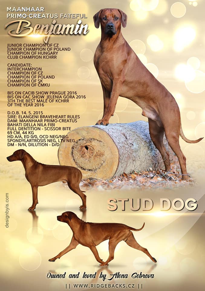 Oba rodiče jsou výstavně vedení a velmi úspěšní. Vynikají nejen svým vzhledem, ale také povahou. Oba rodiče jsou geneticky testovaní a zdraví. A také to nejlepší předali naší Aimi.